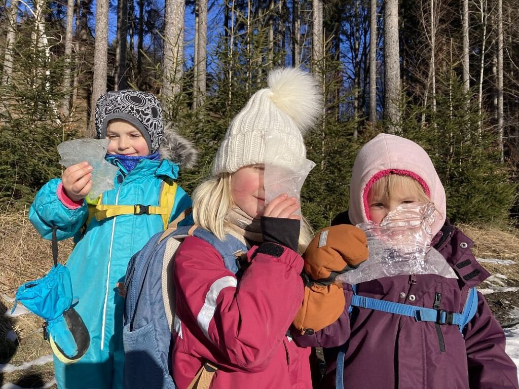 Ačkoliv jsme si zimu náležitě užili, v březnu nadešel čas se s ní rozloučit. Trénovali jsme trpělivost, vyhlíželi první jarní kytičky a sledovali, jak přibývá sluníčka. A když tma ztratila svou převahu, uspořádali jsme oslavu jarní rovnodennosti, pozvali jsme i rodiče a společně poděkovali Moraně za krásnou zimu a uložili ji ke spánku. Na jejím místě jsme přivítali Vesnu, Jaro, Slunce. A teď už jsme připravení užít si další dobrodružství a pozorovat proměny přírody hezky zblízka s bahnem na botách a úsměvem na tváři.